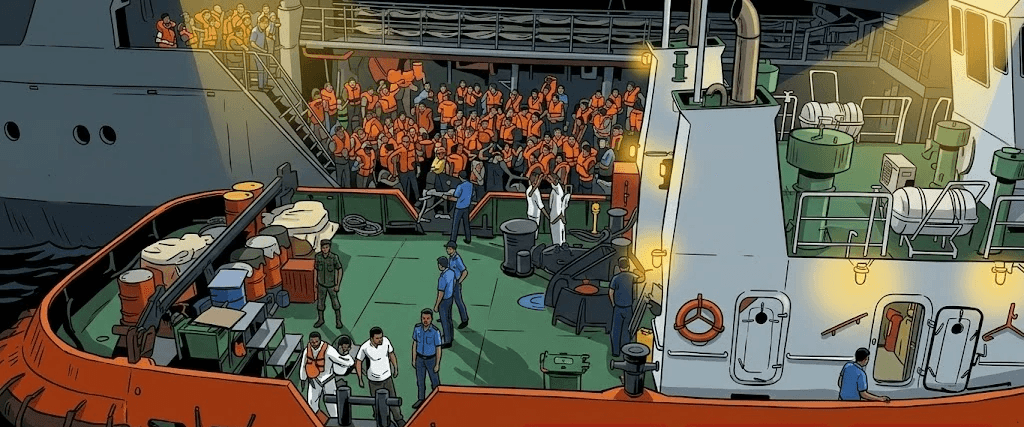 எரியும் கப்பல்களிலிருந்து 38 ஊழியர்கள் மீட்கப்பட்டுள்ளதாக ஈராக் துறைமுக நிறுவனத்தின் தலைவர் தெரிவித்துள்ளார்.