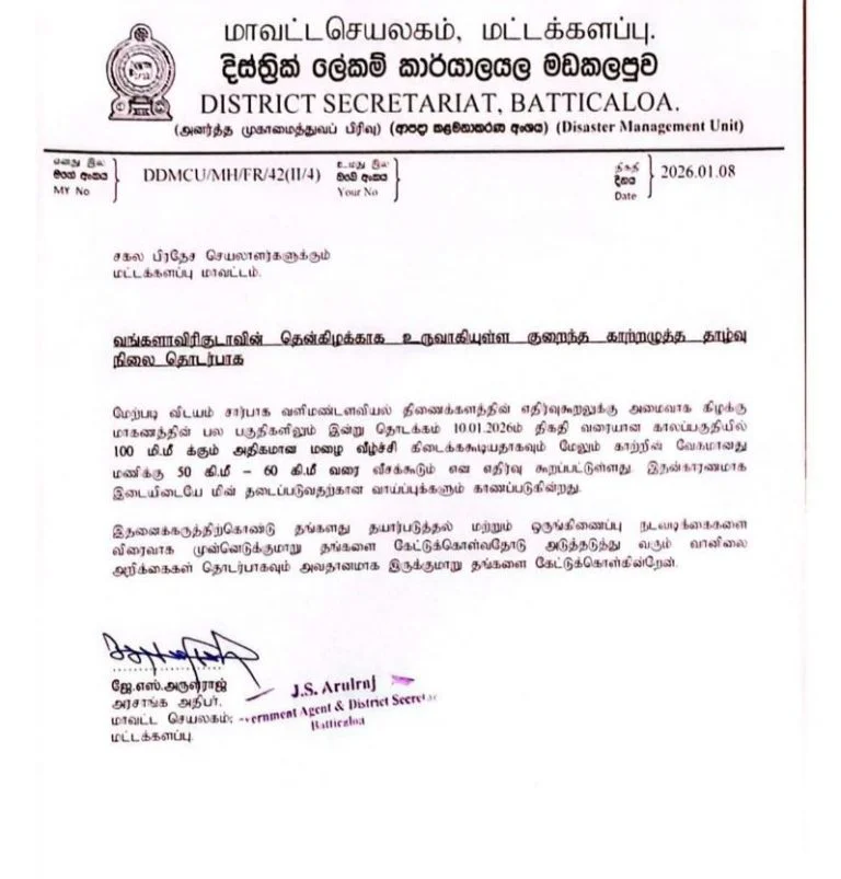 சீரற்ற காலநிலை தொடர்பாக அரசாங்க அதிபர் இன்று (08)அறிக்கை ஒன்றை வெளியிட்டுள்ளார்.