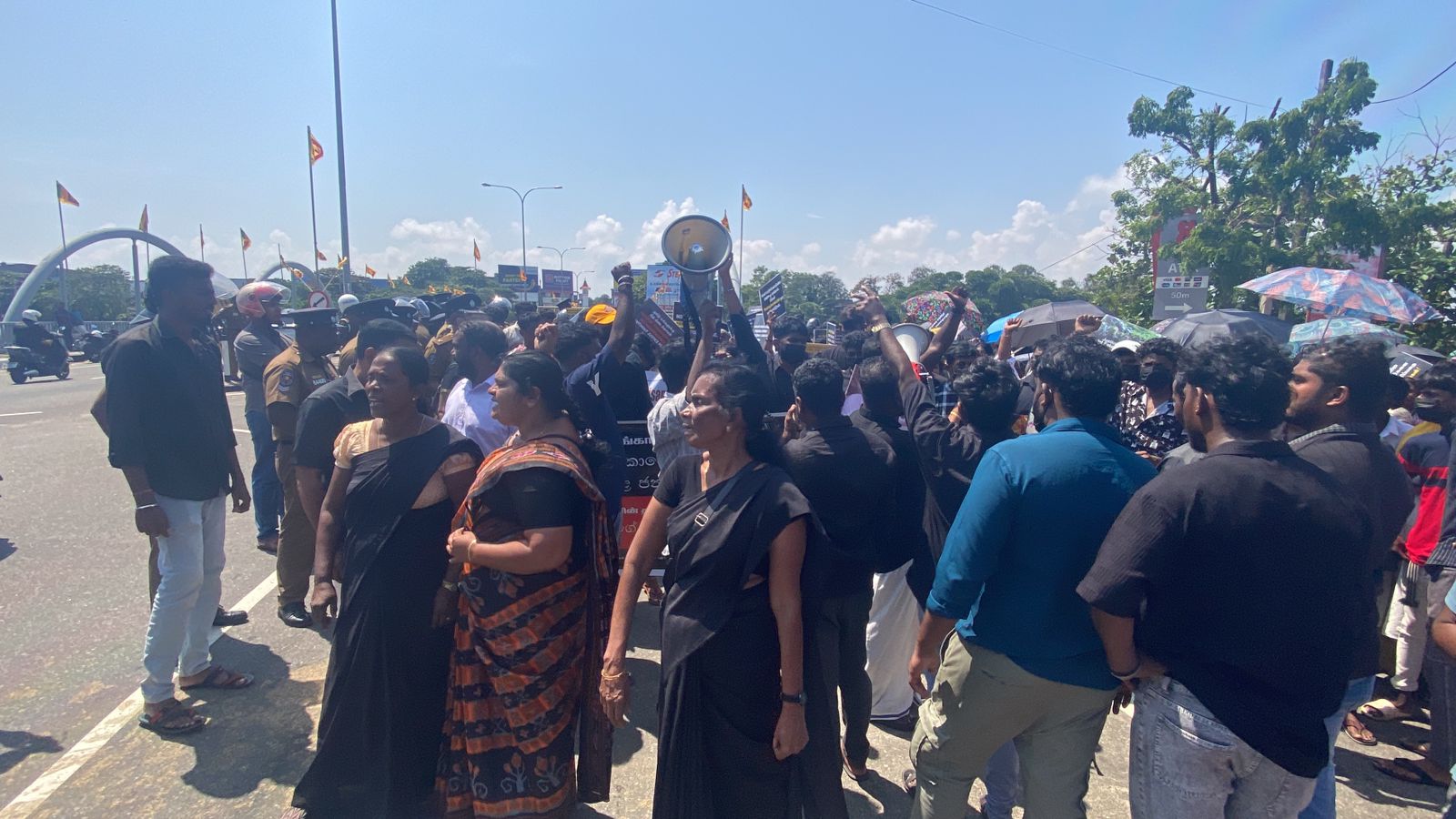எனினும் தமது போராட்டம் வழமையாக காந்தி பூங்காவில் நிறைவடைவதனால் அங்கு செல்வதற்கு அனுமதி வழங்குமாறு காணாமல் போனவர்களின் உறவினர்களினால் கோரிக்கை முன்வைக்கப்பட்டன.