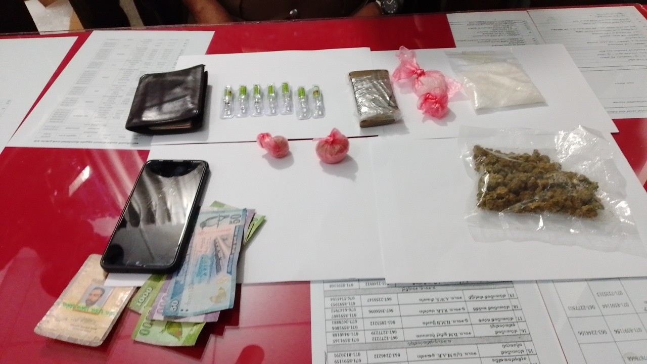 குறித்த சந்தேக நபர் கொண்டு வந்த போதைப்பொருட்களில் குஷ், கேரளா கஞ்சா, ஐஸ் ,ஹெரோயின், உட்பட 4 வகையான போதைப்பொருட்கள், 2 தொலைபேசிகள் ஒரு தொகை பணம் மா டின் என்பன நீலாவணை பொலிஸாரால் மீட்கப்பட்டிருந்தன.