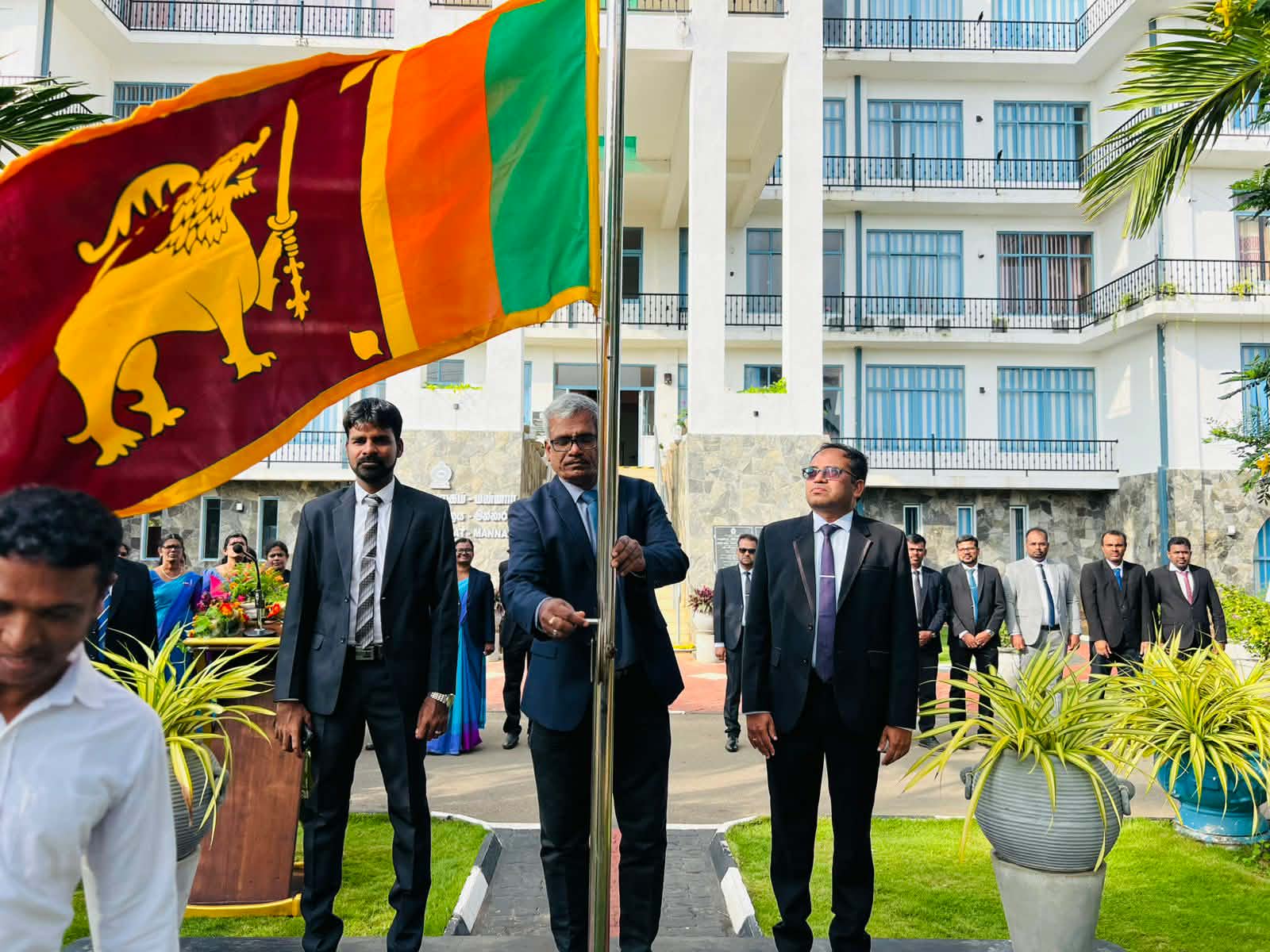 இதன் போது தேசிய கொடி ஏற்றப்பட்டு தேசிய கீதம் இசைக்கப்பட்டது.