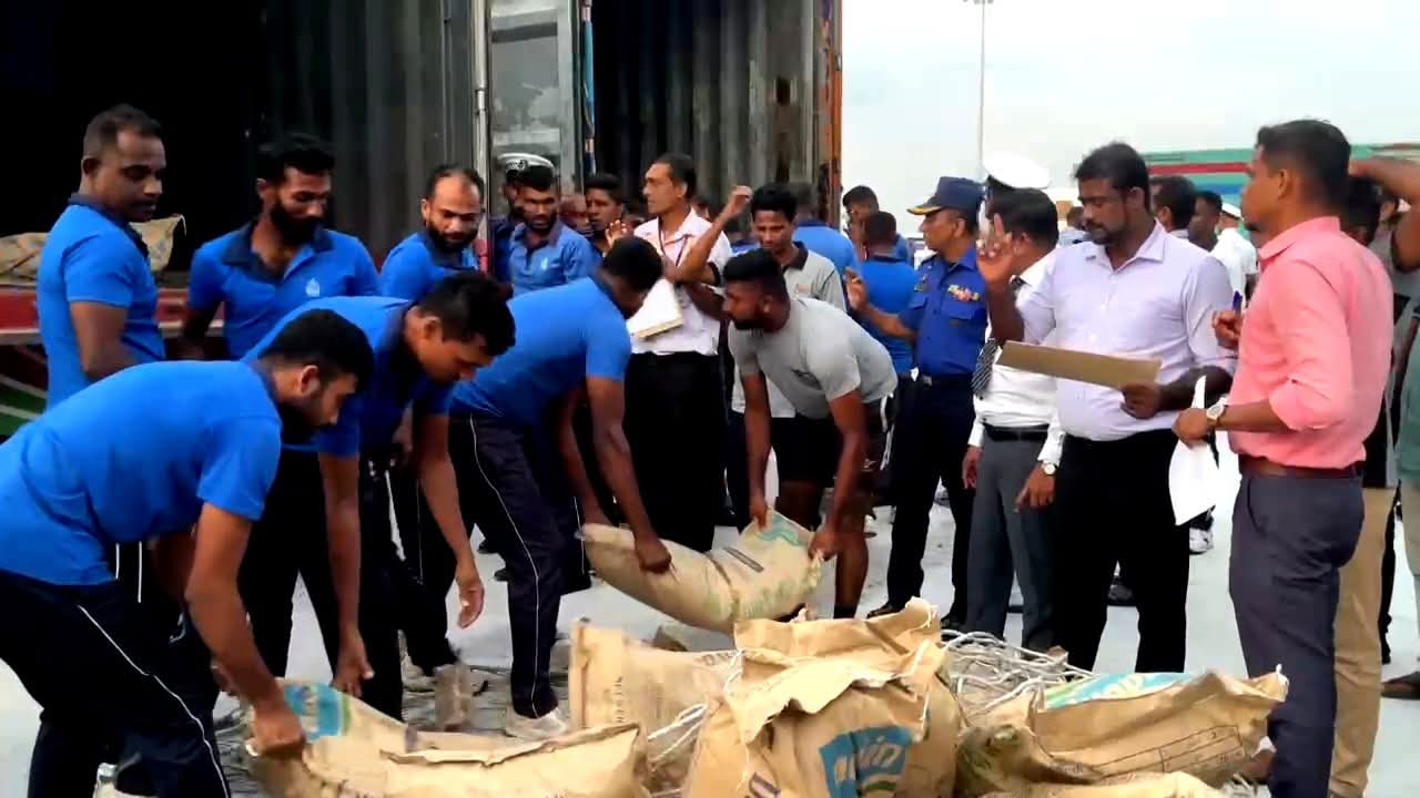 அதன் பின்பு உலர் உணவுப்பொருட்கள், ஆடைகள், குடிநீர், மருந்துப் பொருட்கள் அடங்கிய 700 மெற்றிக் தொன் நிவாரணப்பொருட்கள் பிரதி அமைச்சர் அருண் ஹேமச்சந்திராவிடம் துணைத்தூதர் சாய் முரளியினால் உத்தியோகபூர்வமாக கையளிக்கப்பட்டது.