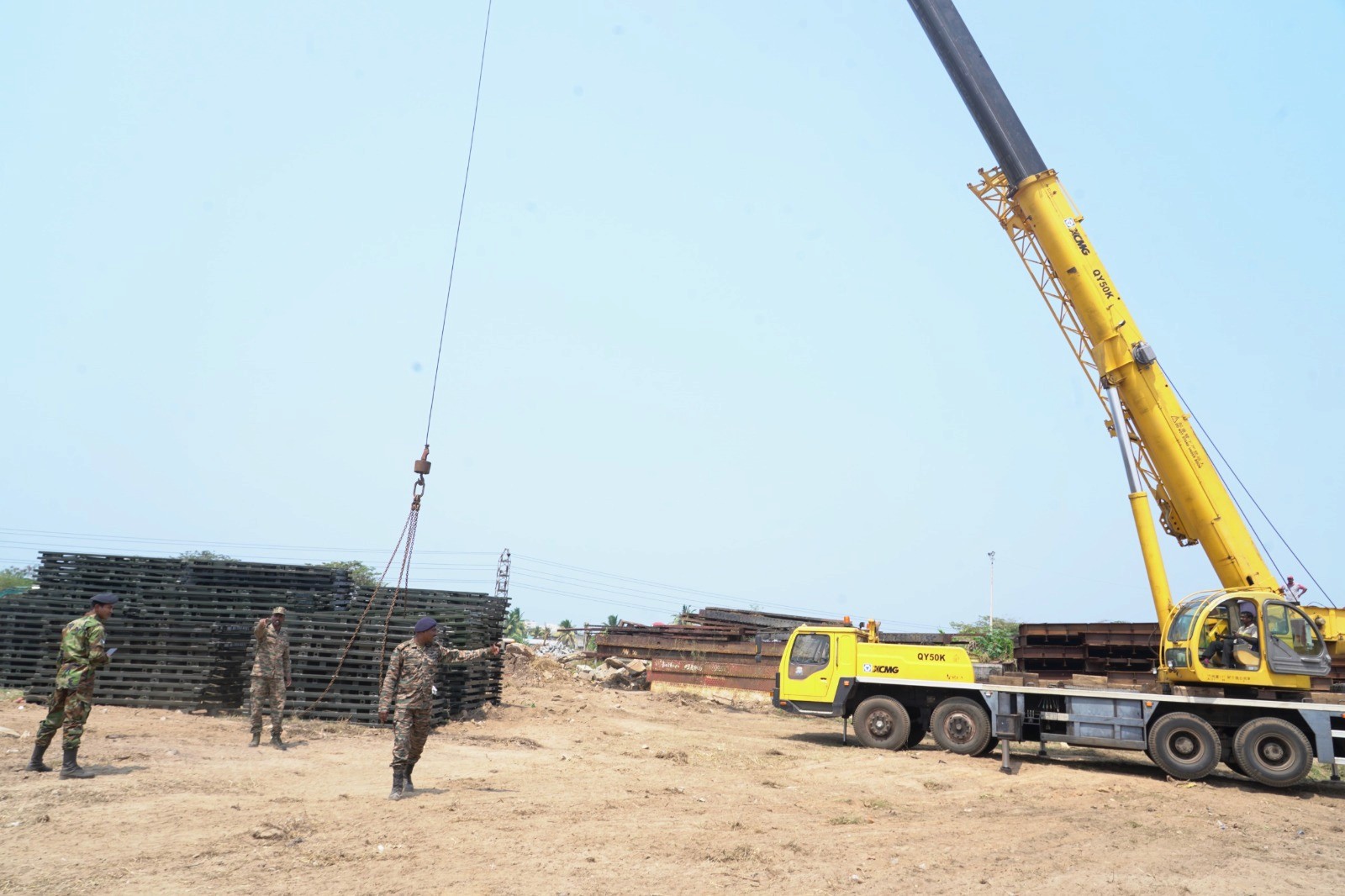 இந்திய உயர்ஸ்தானிகராலயத்தின் முதல் செயலாளர் (பொருளாதாரம் மற்றும் வர்த்தகம்) அவர்கள் இன்று 214 தொன் எடையுடைய பெய்லி பாலங்களின் கூறுகள் அடங்கிய சரக்குத் தொகுதியை வீதி அபிவிருத்தி அதிகார சபை (RDA) தலைவர் மற்றும் அனர்த்த முகாமைத்துவ நிலைய (DMC) அதிகாரிகளிடம் ஒப்படைத்தார்.