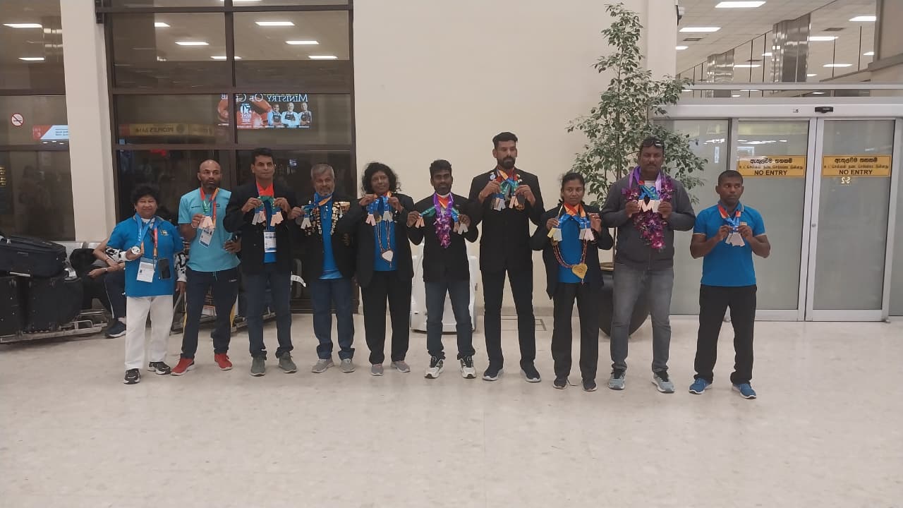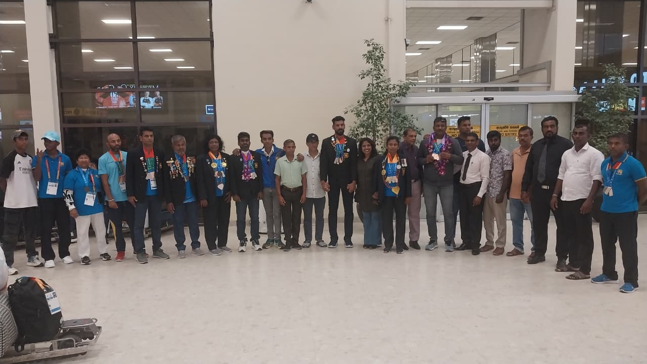 வெற்றி பெற்ற இந்த இலங்கை மெய்வல்லுநர் குழுவினர் அபுதாபியில் இருந்து 'ஏர் அரேபியா' (Air Arabia) நிறுவனத்திற்குச் சொந்தமான 3L-307 என்ற விமானம் மூலம் நேற்று இரவு 09.28 மணியளவில் கட்டுநாயக்க விமான நிலையத்தை வந்தடைந்தனர்.