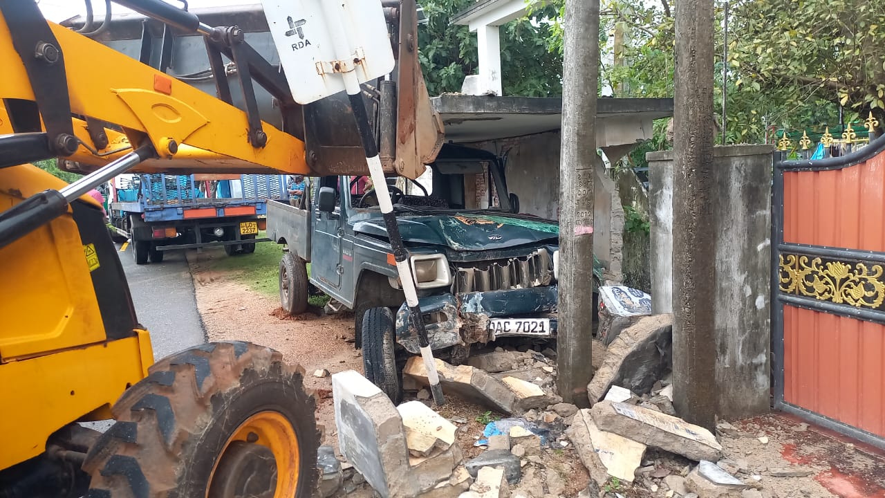 யாழ்ப்பாணத்தில் இருந்து பருத்தித்துறை நோக்கி வேகமாக பயணித்த குறித்த வாகனம் நீர்வேலி கந்தசுவாமி கோவிலுக்கு அண்மித்த சந்தி பகுதியில் வேக கட்டுப்பாட்டை இழந்து பஸ் நிலைய கட்டடத்துடன் மோதி விபத்துக்கு உள்ளானது.