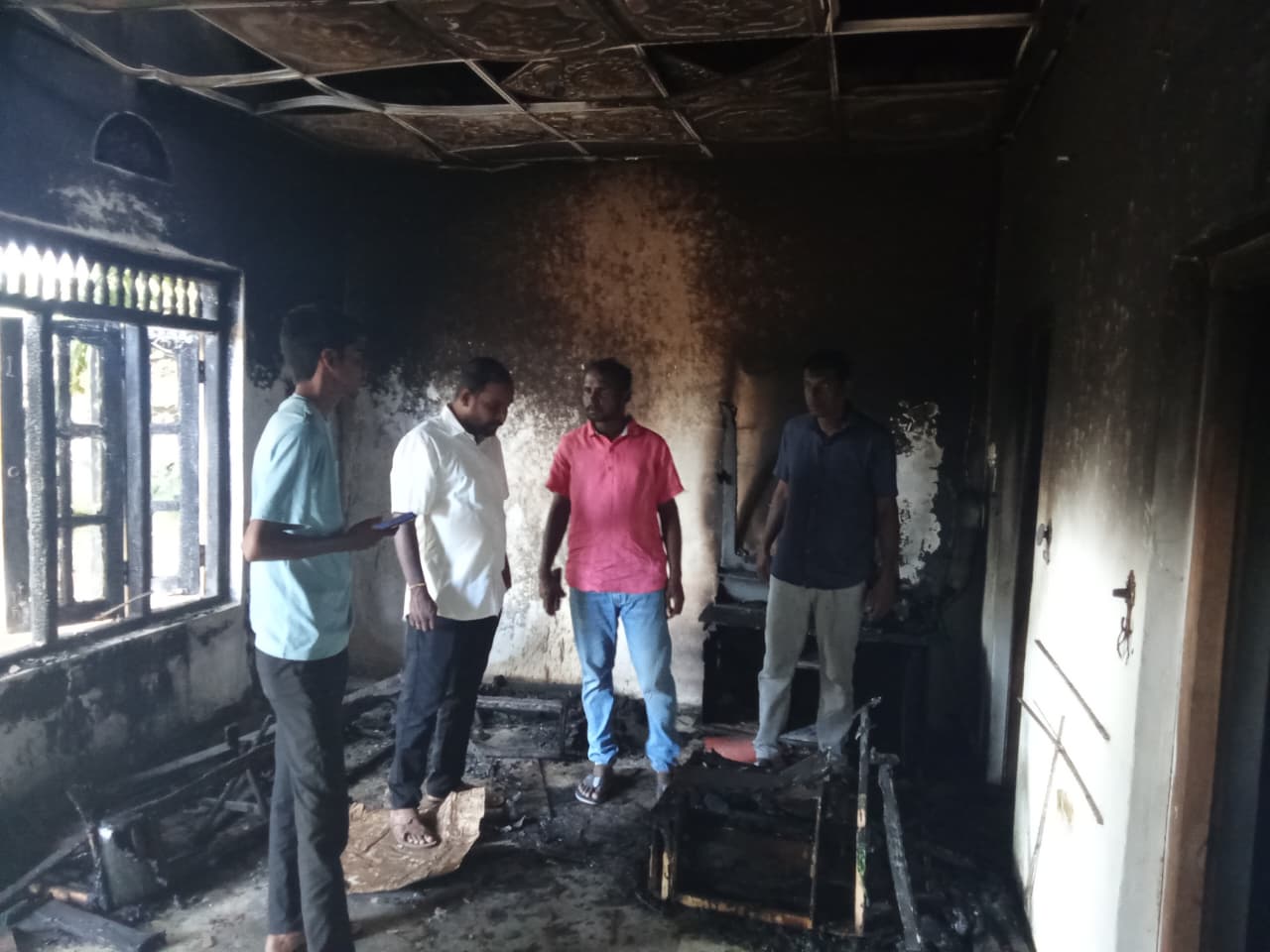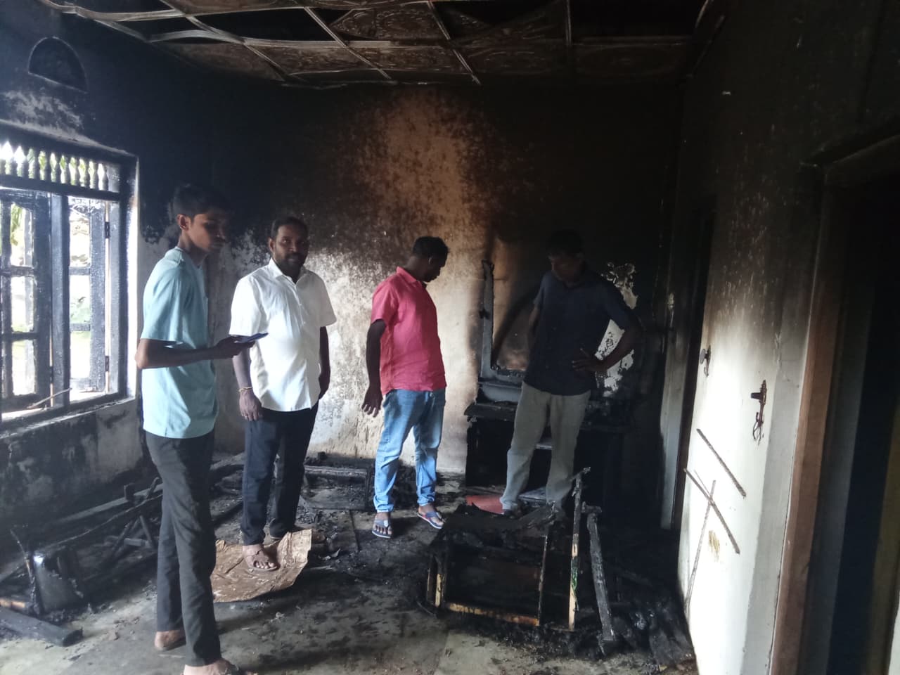இதனால் வீட்டின் ஒரு பகுதி சேதமடைந்ததாகவும், வீட்டின் உள்ளே நிறுத்தி வைக்கப்பட்டிருந்த ஒரு மோட்டார் சைக்கிள் முற்றாக எரிந்து நாசமாகியுள்ளதோடு, வீட்டு உபயோகப் பொருட்கள், கதவுகள், ஜன்னல்கள் மற்றும் கூரையின் சில பகுதிகளும் சேதமடைந்துள்ளதாக தெரிவிக்கப்படுகிறது.