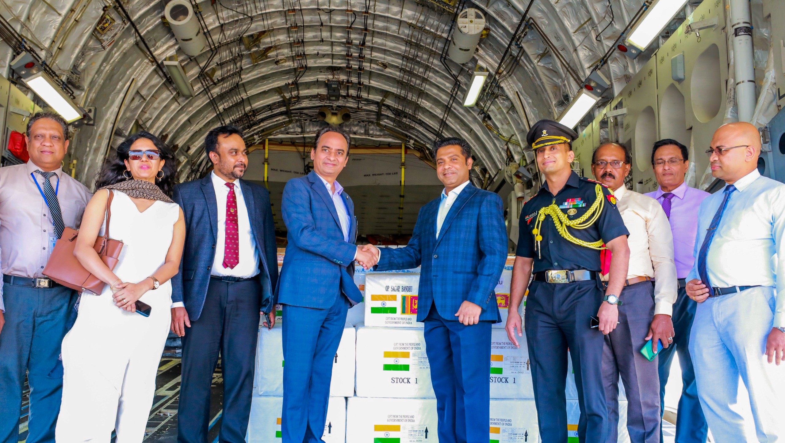 இந்த மருத்துவக் குழுவை இந்தியாவிற்கு அழைத்துச் செல்ல வந்த இந்திய விமானப்படையின் C-17 குளோப்மாஸ்டர் விமானம் மூலம் 10 டொன் மருந்துகள் மற்றும் 15 டொன் உலர் உணவுப் பொருட்கள் அடங்கிய நிவாரணப் பொருட்கள் இலங்கைக்கு கொண்டு வரப்பட்டன.
