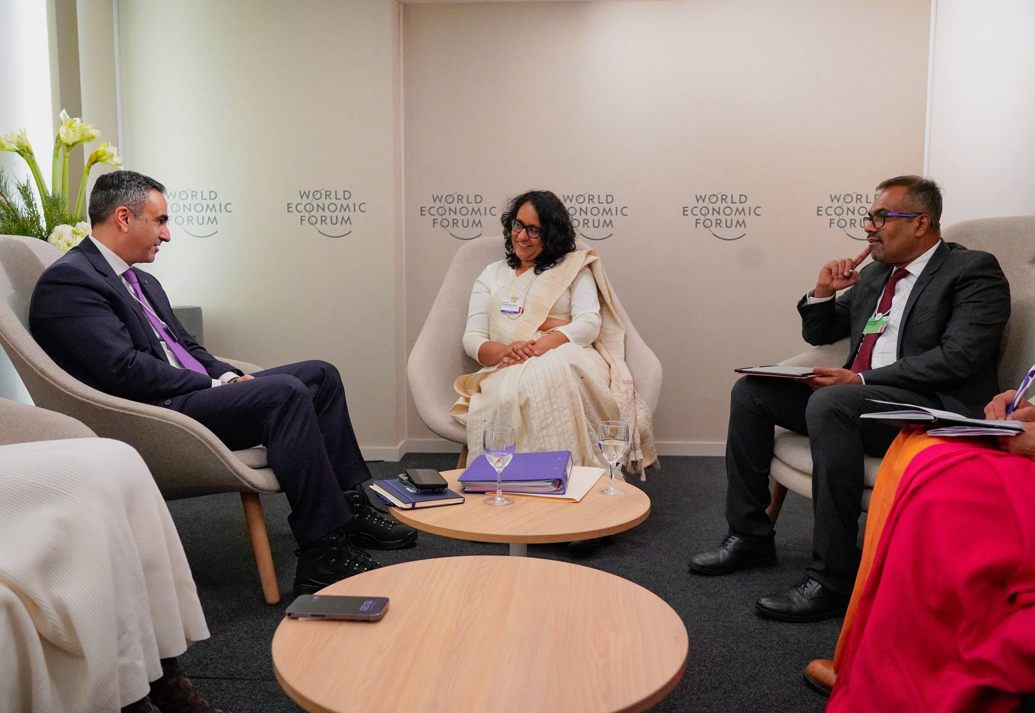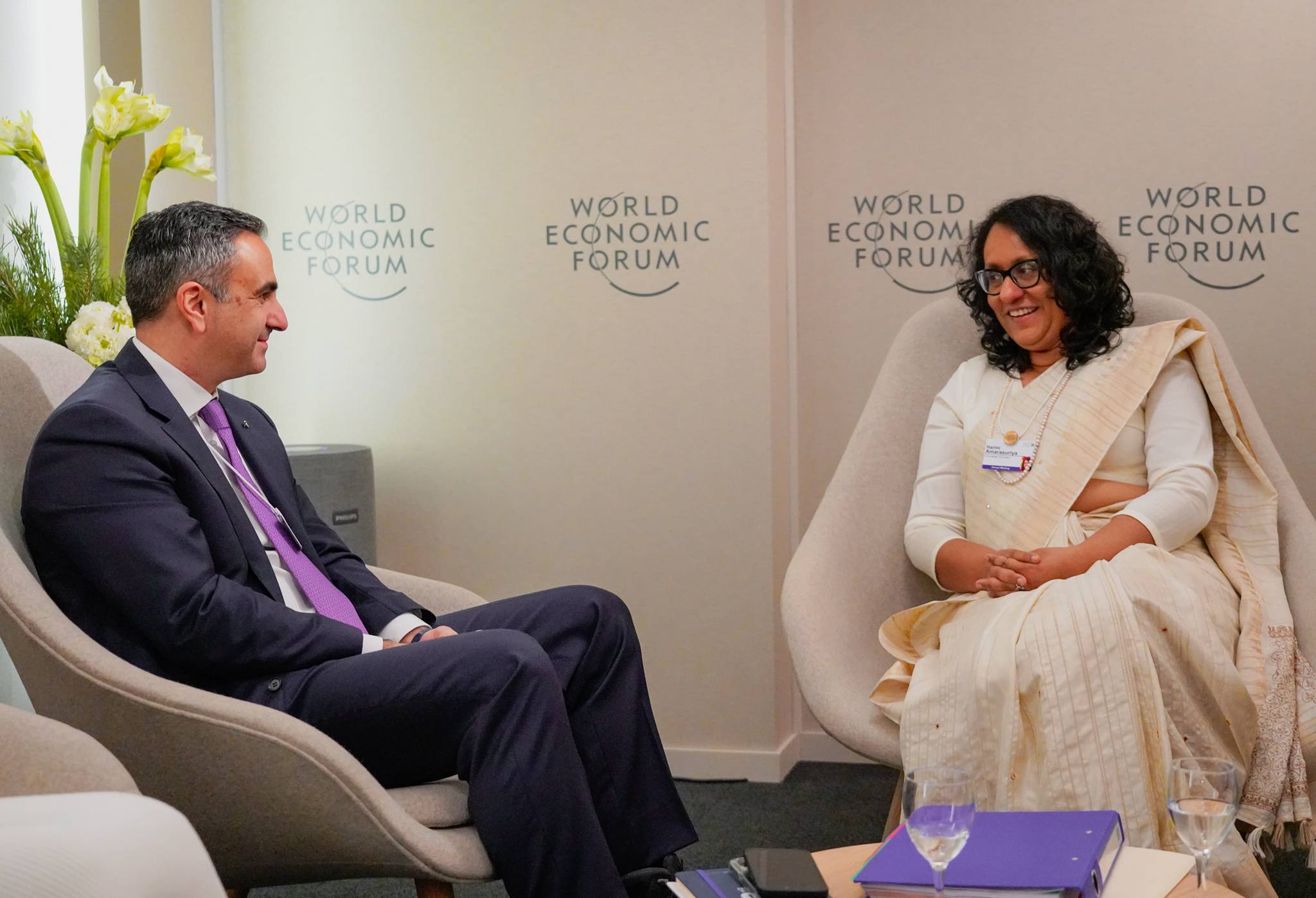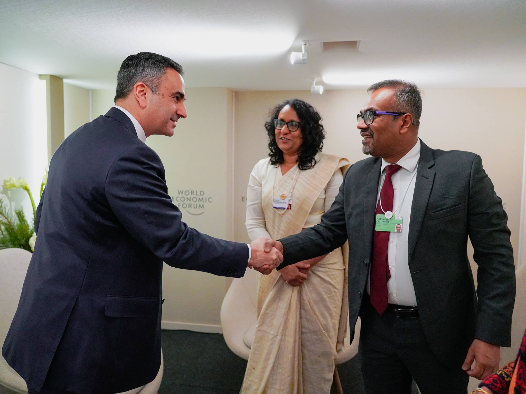 டாவோஸ் உலகப் பொருளாதார மன்றத்தின் மாநாட்டு மையத்தில் நேற்று Menzies Aviation நிறுவனத்தின் தலைவர் திரு. ஹசன் எல் ஹரி (Mr. Hassan El Houry) அவர்களைச் பிரதமர் ஹரிணி அமரசூரிய சந்தித்தார்.