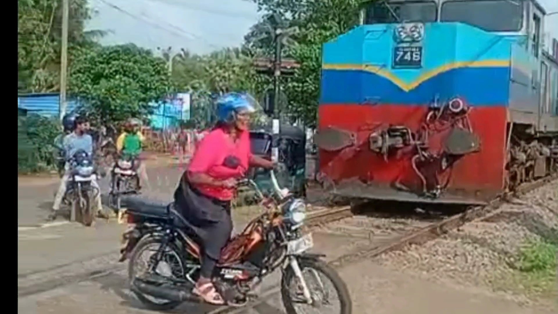 வவுனியா தாண்டிக்குளம் புகையிரத கடவையினை புகையிரத சமிக்கையை மீறி பெண் ஒருவர் மோட்டார் சைக்கிளில் பயணித்துள்ளார்.