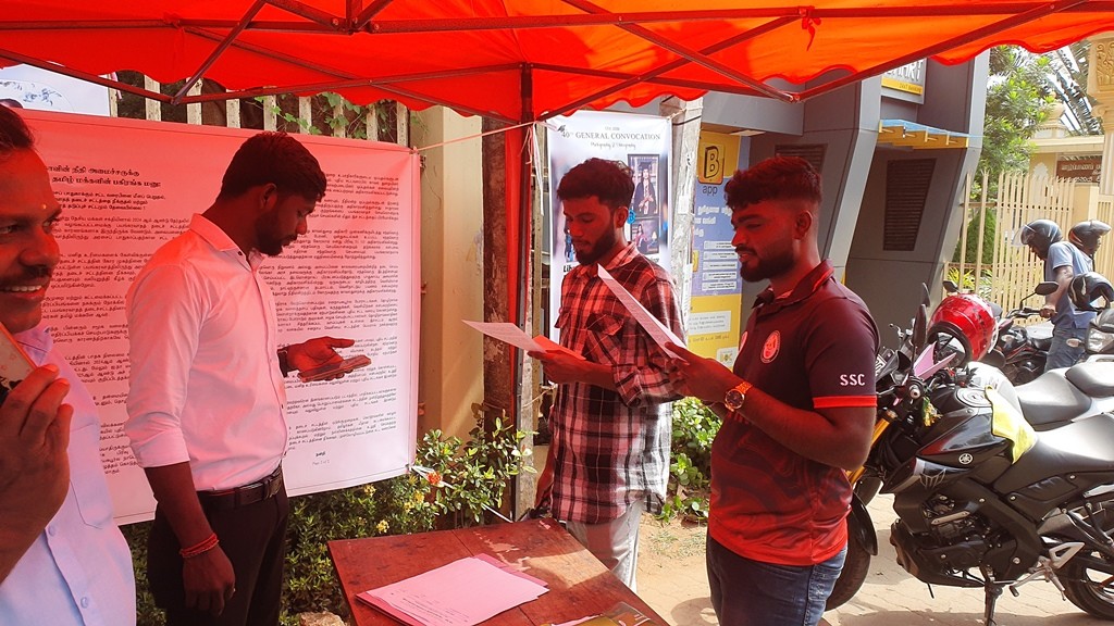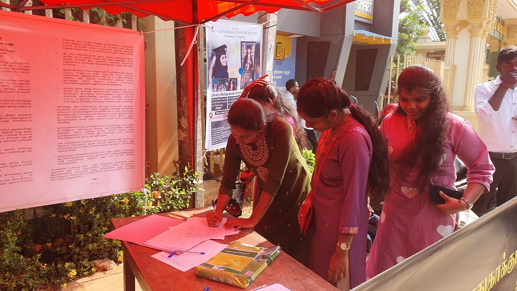 அந்நிலையில் யாழ். பல்கலைக்கழகம் முன்பாக எதிர்வரும் ஞாயிற்றுக்கிழமை வரையில் குறித்த கையெழுத்து போராட்டமும் முன்னெடுக்கப்படவுள்ளது.