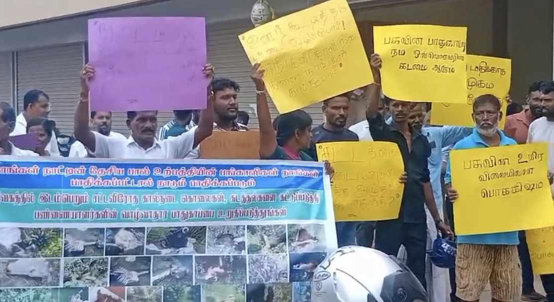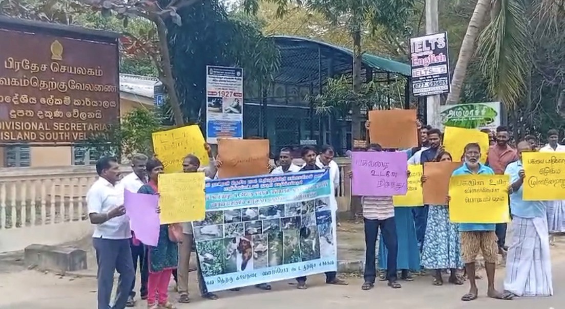 குறித்த போராட்டம் தீவகம் தெற்கு கால்நடை வளர்ப்போர் கூட்டுறவு சங்கத்தினரால் வேலணை வங்களாவடியில் நடைபெற்றது.