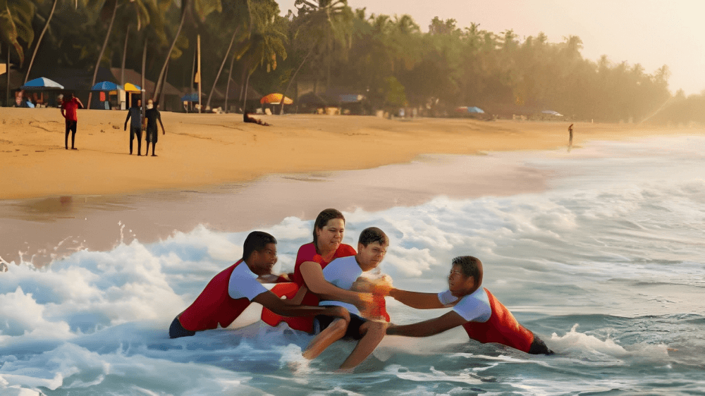 மதிய நேரத்தில் கடற்கரையில் கடமையில் ஈடுபட்டிருந்த உயிர்காப்பு அதிகாரிகள்,