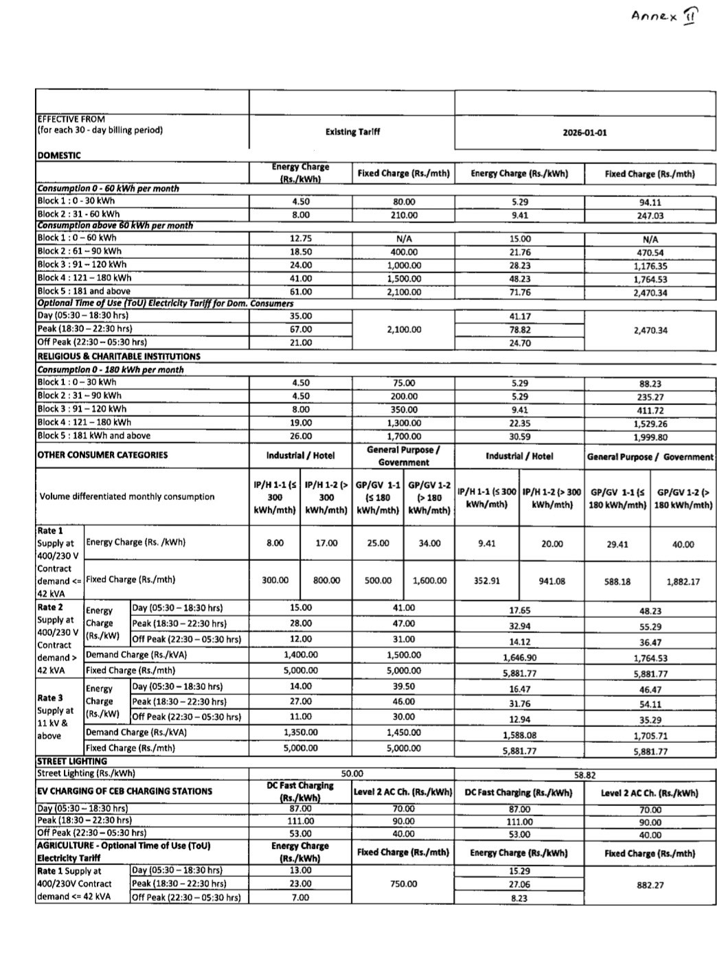 இந்த முன்மொழிவின் கீழ், உள்நாட்டு மின்சார நுகர்வோருக்கு அனைத்து பயன்பாட்டு அளவுகளிலும் (consumption blocks) ஒரு அலகு கட்டணமும் (unit rates), நிலையான கட்டணமும் (fixed charges) உயர்த்தப்பட உள்ளன.