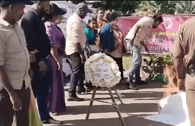 இன்று (27) காலை அவர்கள் "நீதியின் மரணம்" எனக் குறிப்பிட்டு சவப்பெட்டியொன்றை எரித்ததுடன், அதனை உடனடியாக அகற்றுமாறு பொலிஸார் அறிவித்தனர்.