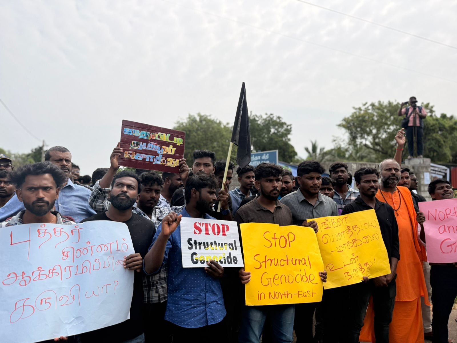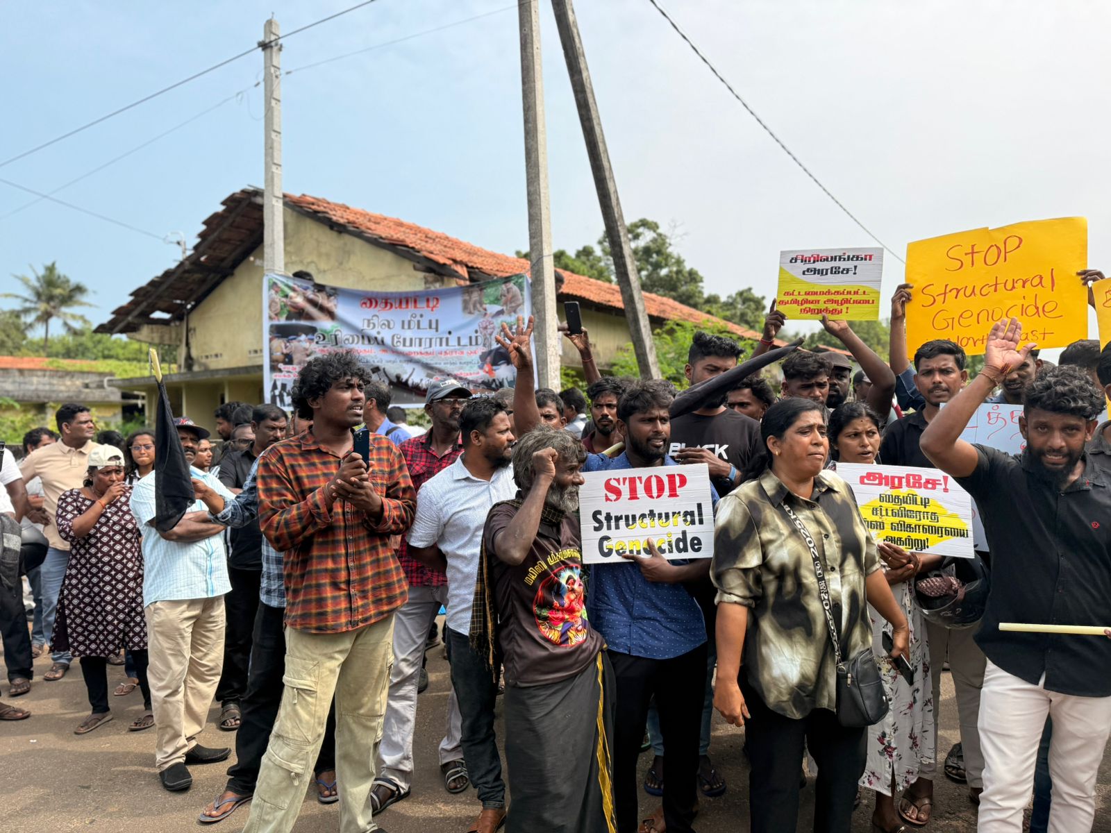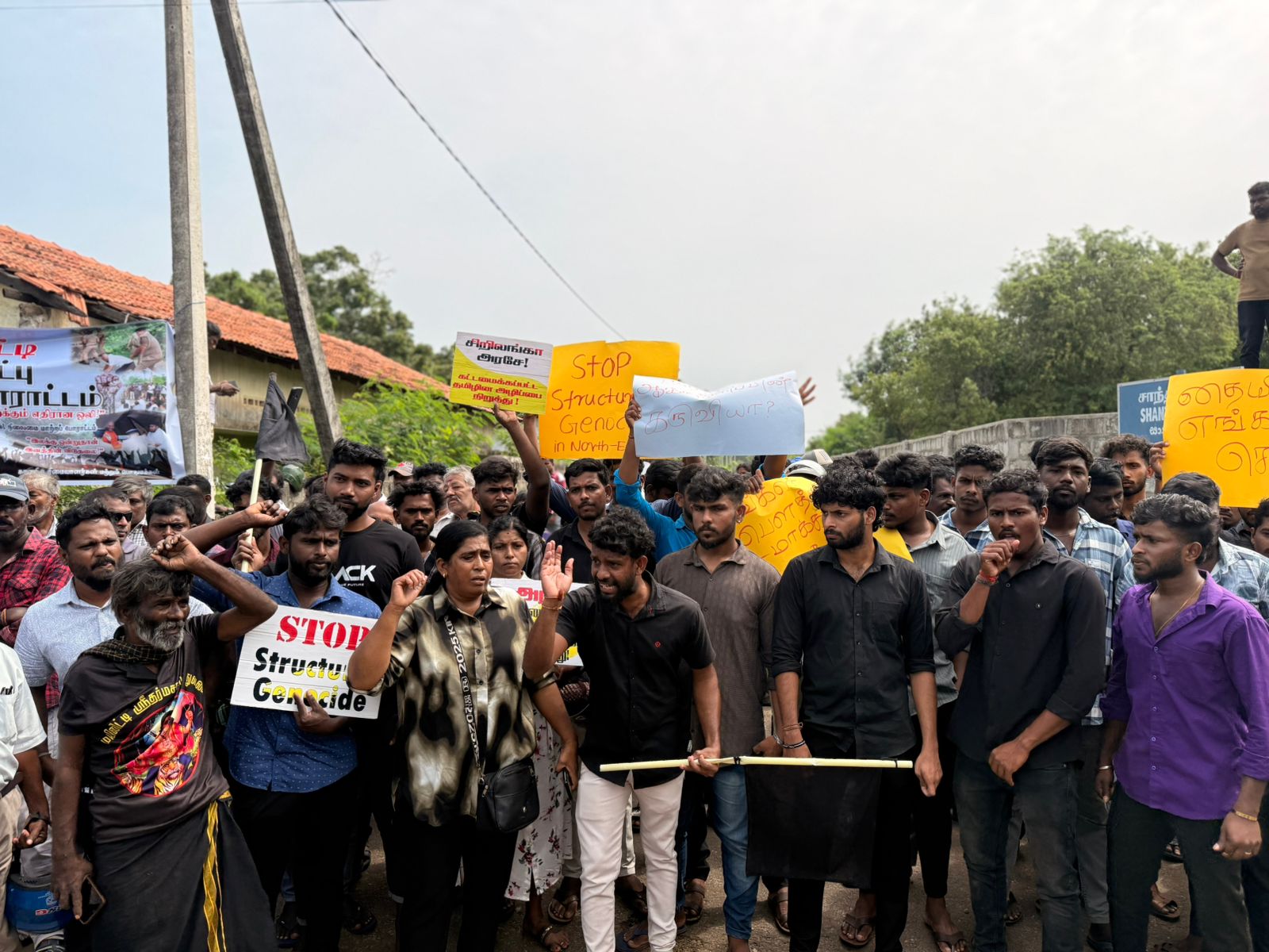 சட்டவிரோதமாக தனியார் காணிகளில் அமைக்கப்பட்ட தையிட்டி திஸ்ஸ விகாரை முன்பாக காணி உரிமையாளர்கள் போராட்டத்தை மேற்கொண்டு வருகின்றனர்.
