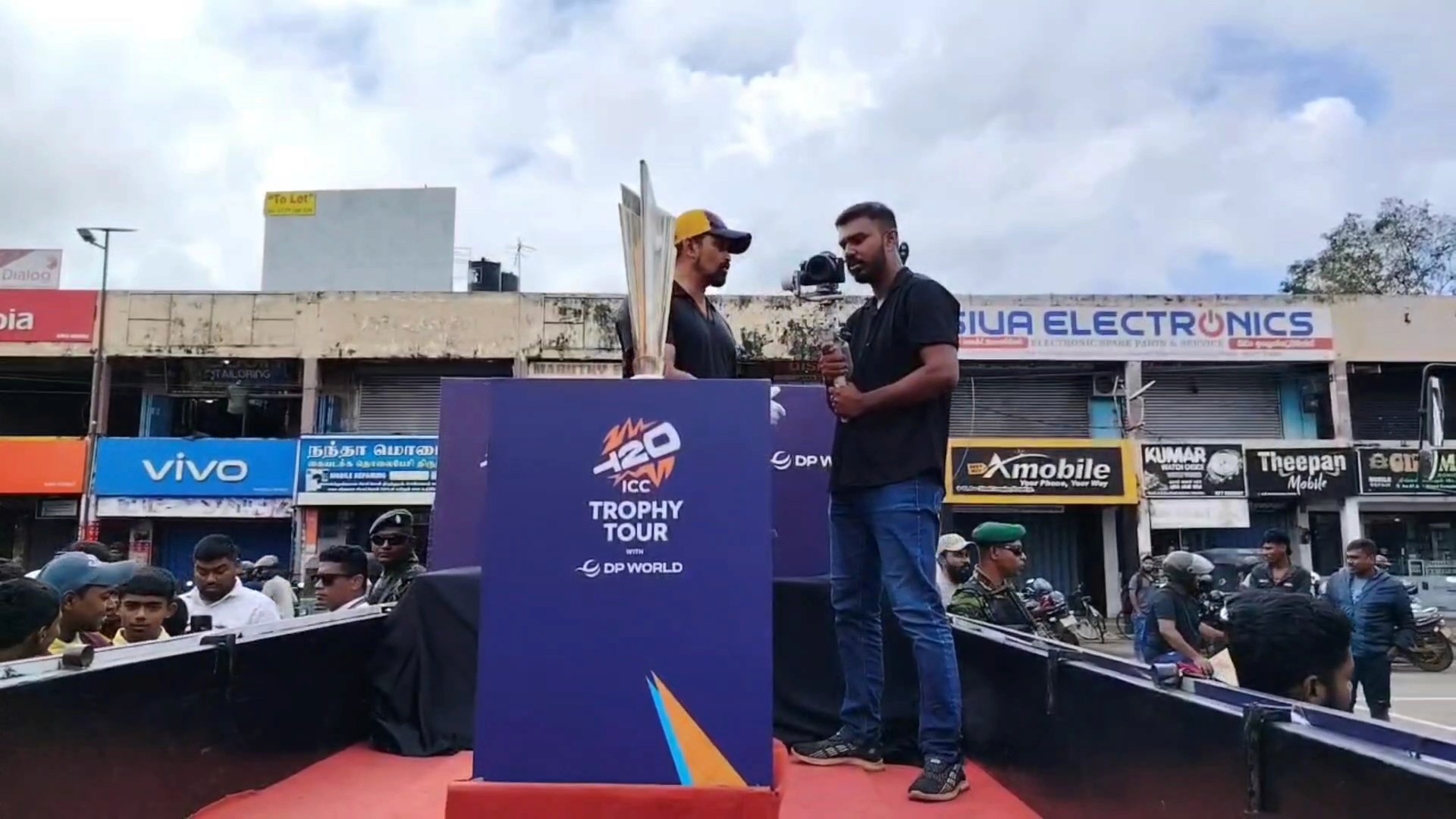 இம்முறை இடம்பெறும் டி-20 உலகக்கிண்ணத்திற்கான வெற்றி கிண்ணம் இன்று வவுனியாவிற்கு கொண்டுவரப்பட்டது.