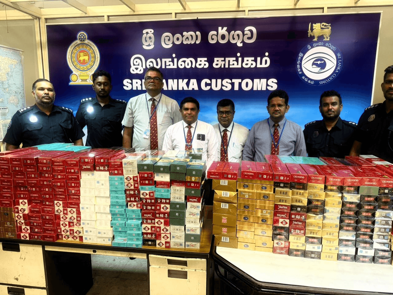 இன்று அதிகாலை கட்டுநாயக்க விமான நிலையத்தில் சீனாவில் தயாரிக்கப்பட்ட, ரூ. 1,83,000 மதிப்புள்ள சிகரெட்டுகளுடன் சட்டவிரோதமாக நாட்டிற்குள் நுழைய முயன்ற மூன்று சீன நாட்டினர் கட்டுநாயக்க விமான நிலையத்தில் சுங்கத்துறை அதிகாரிகளால் கைது செய்யப்பட்டனர்.