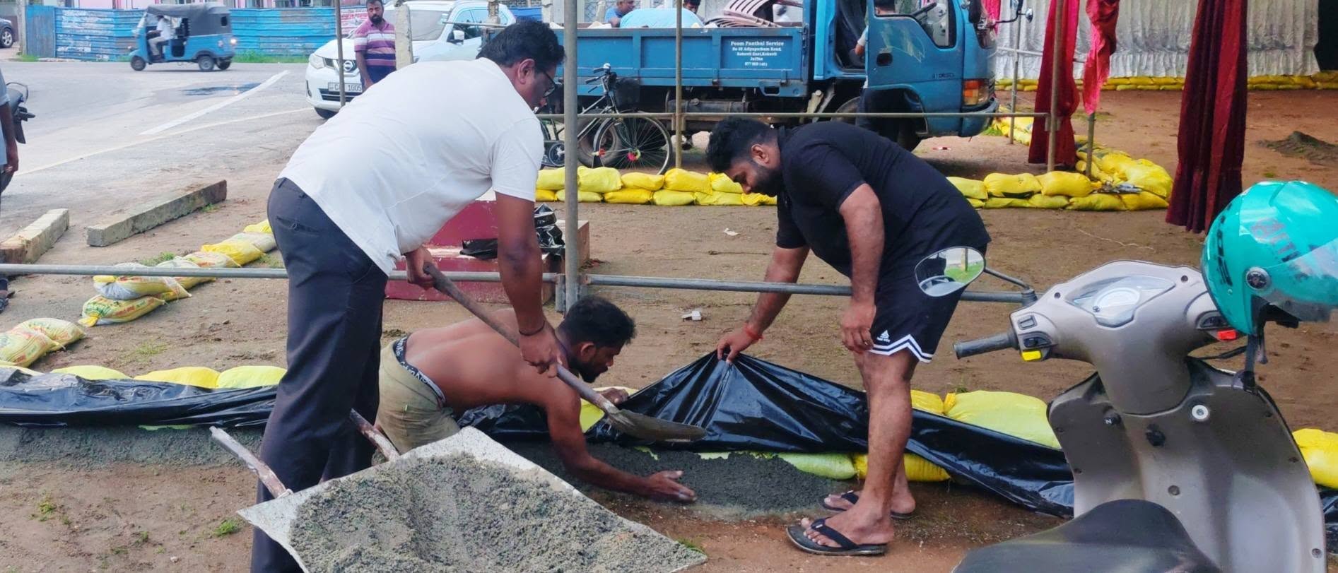 யாழில் தொடரும் மழை காரணமாக நினைவாலயம் அமைக்கப்படும் பகுதிக்குள் வெள்ள நீர் உட்புகாத வகையில் , மண் மூடைகள் அடுக்கப்பட்டு , மண் நிரப்பப்பட்டு வருகின்றமை குறிப்பிடத்தக்கதாகும்.