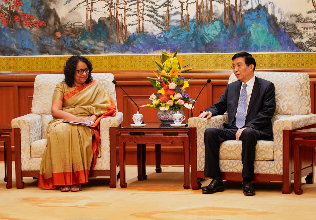 பிரதமர் கலாநிதி ஹரிணி அமரசூரிய, நேற்று ஒக்டோபர் 13 ஆம் திகதி பீஜிங்கில், சீன மக்கள் அரசியல் ஆலோசனைக் குழுவின் தேசியக் குழுத் தலைவர் (CPPCC), மேதகு வாங் ஹூனிங் (Wang Huning) அவர்களைச் சந்தித்தார்.