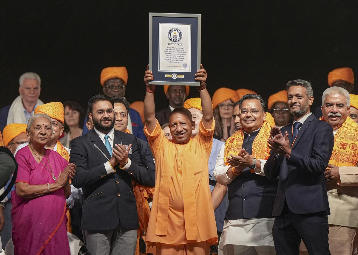 இரு கின்னஸ் சாதனைகளுக்கான சான்றிதழ்களையும் உத்தர பிரதேச மாநில முதலமைச்சர் யோகி ஆதித்யநாத் உள்ளிட்ட அதிகாரிகள் பெற்றுக்கொண்டனர்.