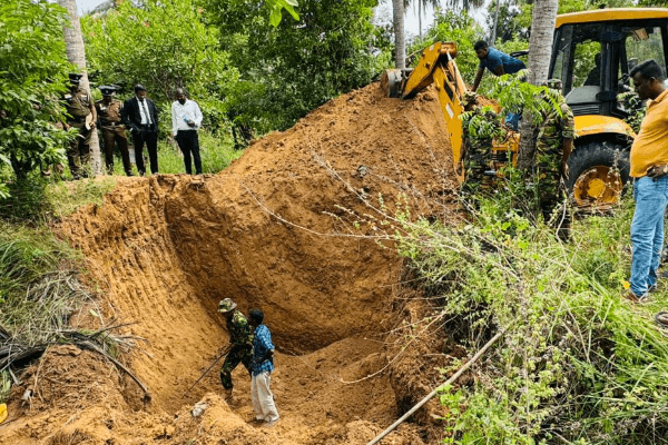 பெக்கோ இயந்திரத்தின் உதவியுடன் நிலத்தில் அகழ்வுப் பணிகள் மேற்கொள்ளப்பட்டது.