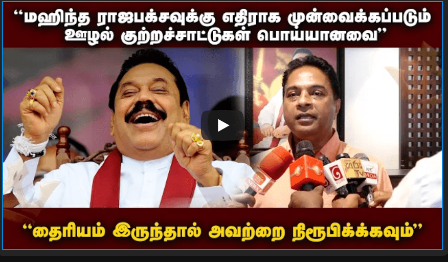 'மஹிந்த ராஜபக்சவுக்கு எதிராக முன்வைக்கப்படும் ஊழல் குற்றச்சாட்டுகள் பொய்யானவை