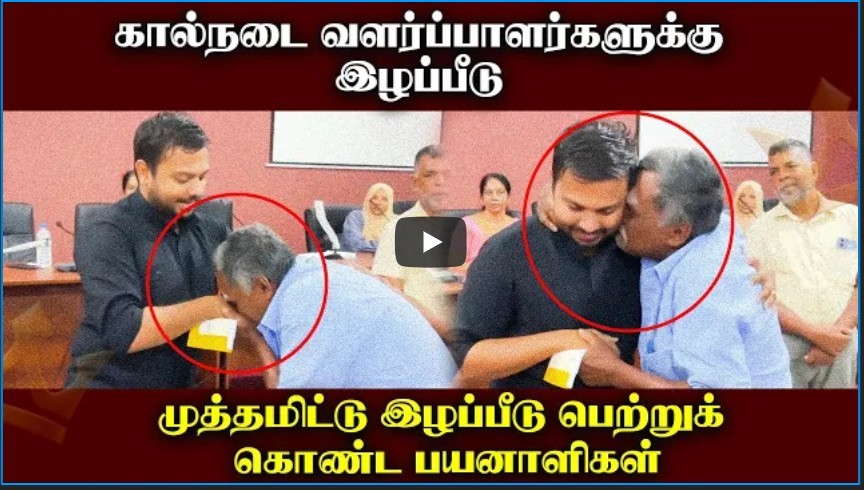 கால்நடை வளர்ப்பாளர்களுக்கு இழப்பீடு :முத்தமிட்டு இழப்பீடு பெற்றுக் கொண்ட பயனாளிகள்
