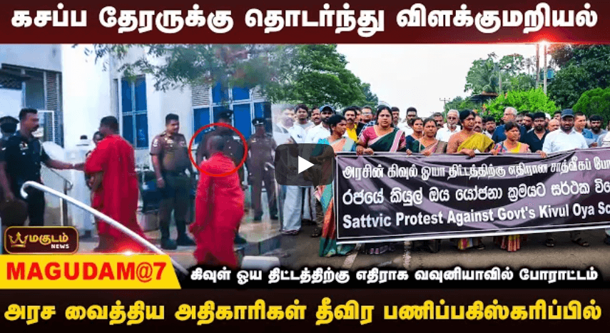 கசப்ப தேரருக்கு தொடர்ந்து விளக்குமறியல் - கிவுள் ஓயா திட்டத்திற்கு எதிராக வவுனியாவில் போராட்டம்