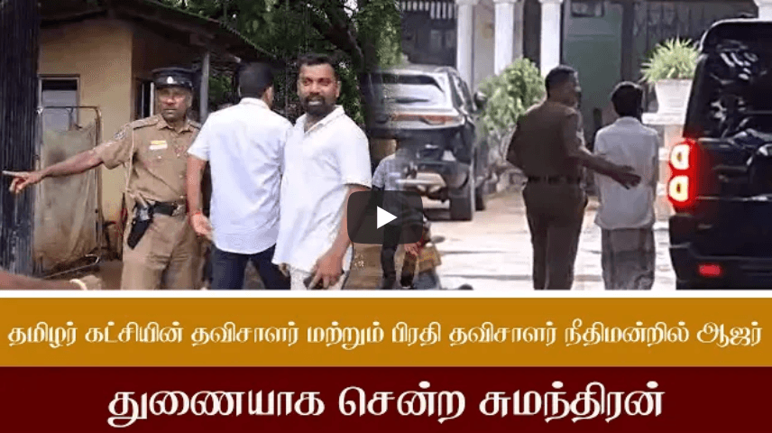 தமிழர் கட்சியின் தவிசாளர் மற்றும் பிரதி தவிசாளர் நீதிமன்றில் ஆஜர்-துணையாக சென்ற சுமந்திரன்