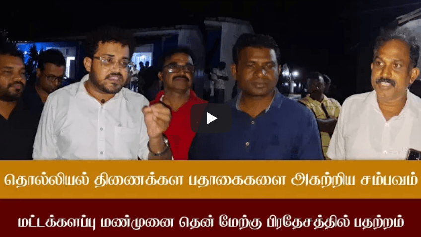 தொல்லியல் திணைக்கள பதாகைகளை அகற்றிய சம்பவம் மட்டக்களப்பு மண்முனை தென் மேற்கு பிரதேசத்தில் பதற்றம்