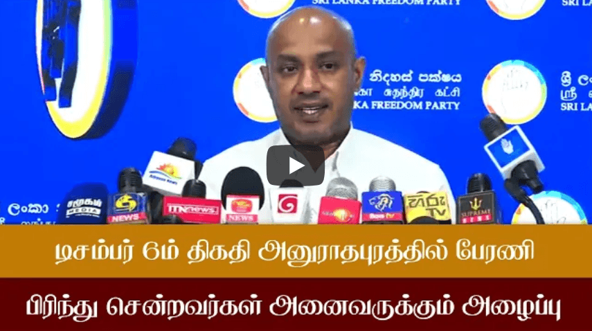 டிசம்பர் 6ம் திகதி அனுராதபுரத்தில் பேரணிபிரிந்து சென்றவர்கள் அனைவருக்கும் அழைப்பு